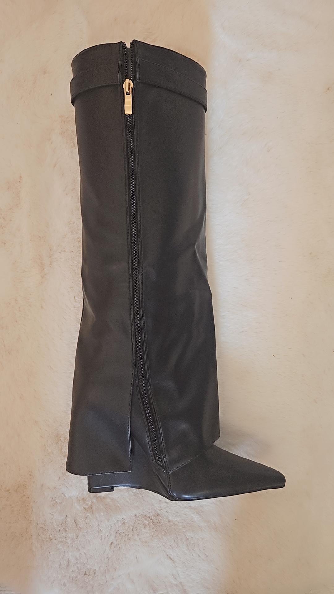 Affirmez votre style avec ces bottes noires à talons, à la fois sophistiquées et audacieuses. Confectionnées dans une matière lisse au fini chic, elles allongent la jambe grâce à leur coupe élancée et leur talon confortable qui assure allure et stabilité.