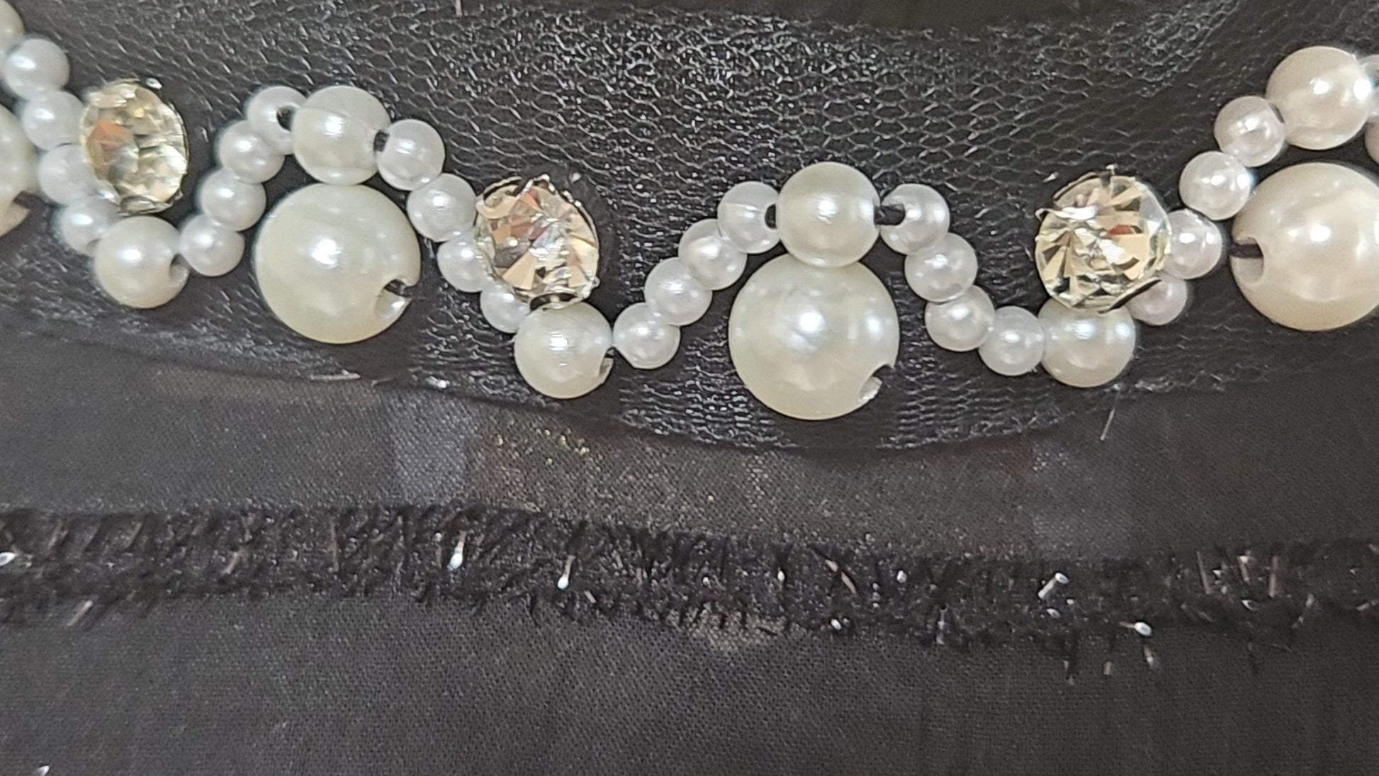 Le col classique et revisité avec des perles délicatement brodées, pour un effet bijou intégré qui sublime l'encolure sans besoin d'accessoires.