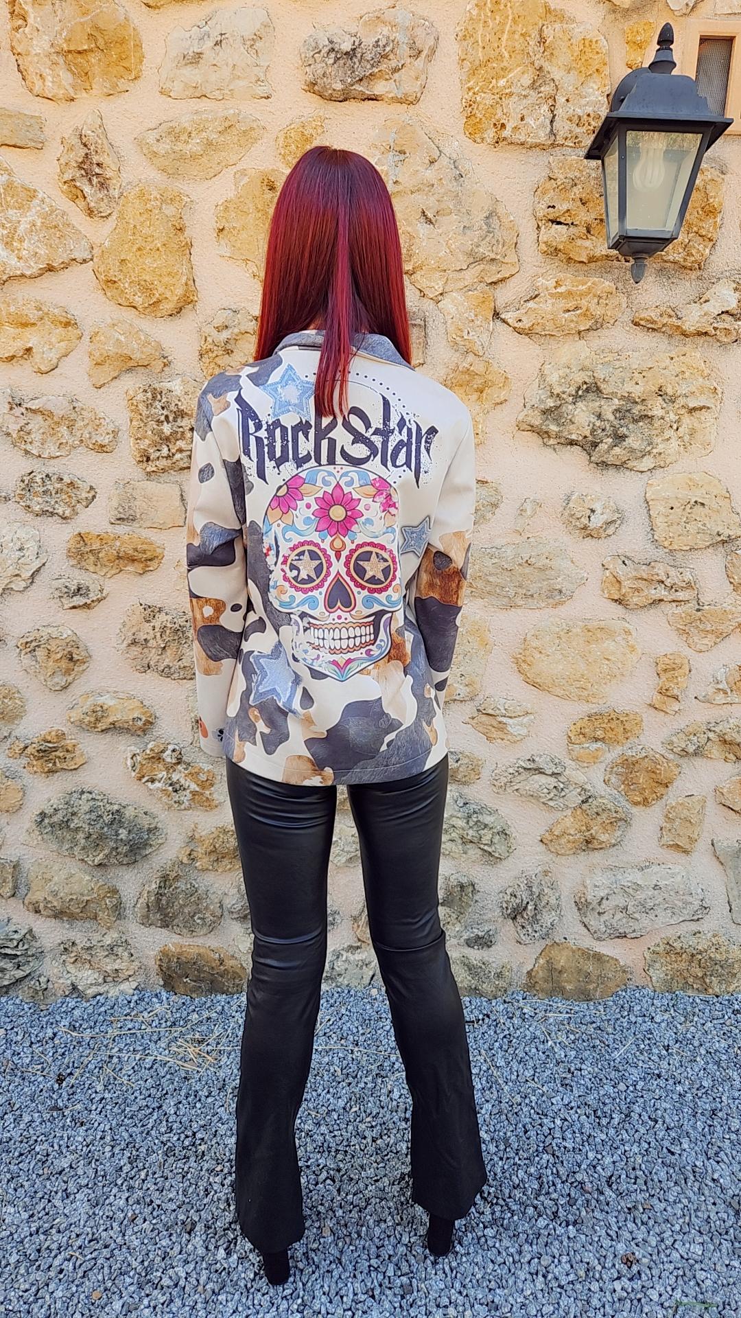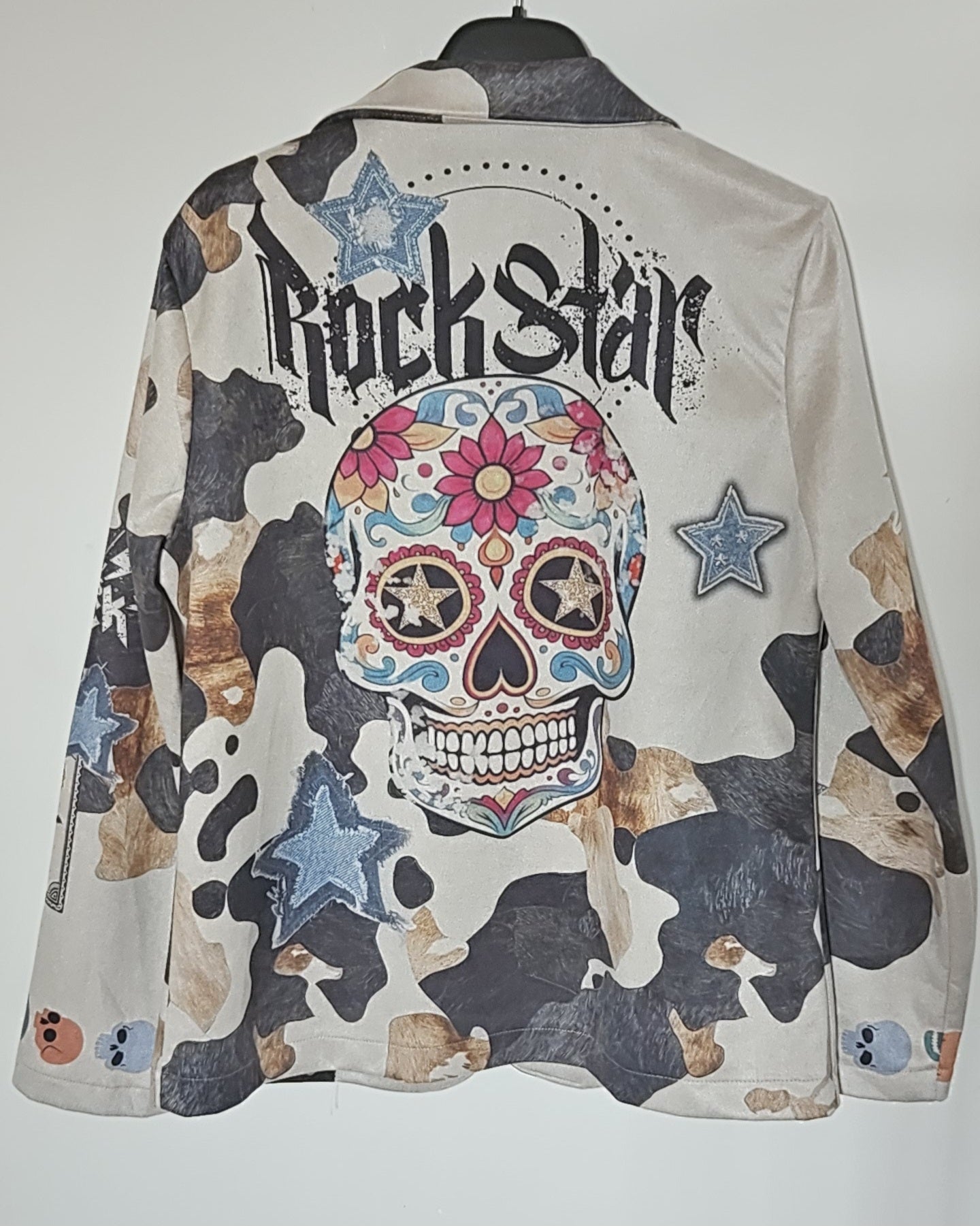 Affirmez votre style avec cette veste blazer unique en son genre. Alliant l'élégance d'une coupe classique à l'esprit rebelle des imprimés, ce blazer est conçu pour celles qui n'ont pas peur de se démarquer.
